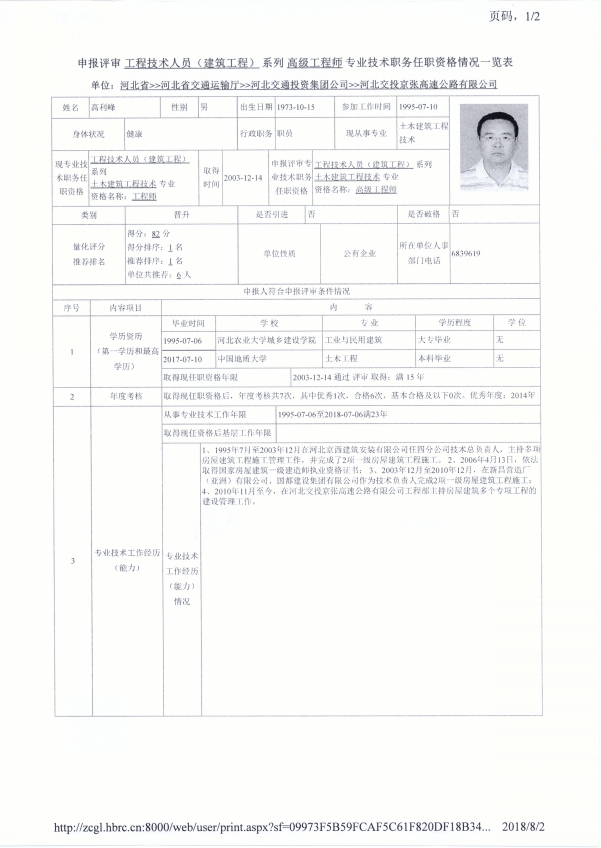 京張公司2018年度專業(yè)技術職稱申報公示(高利峰)